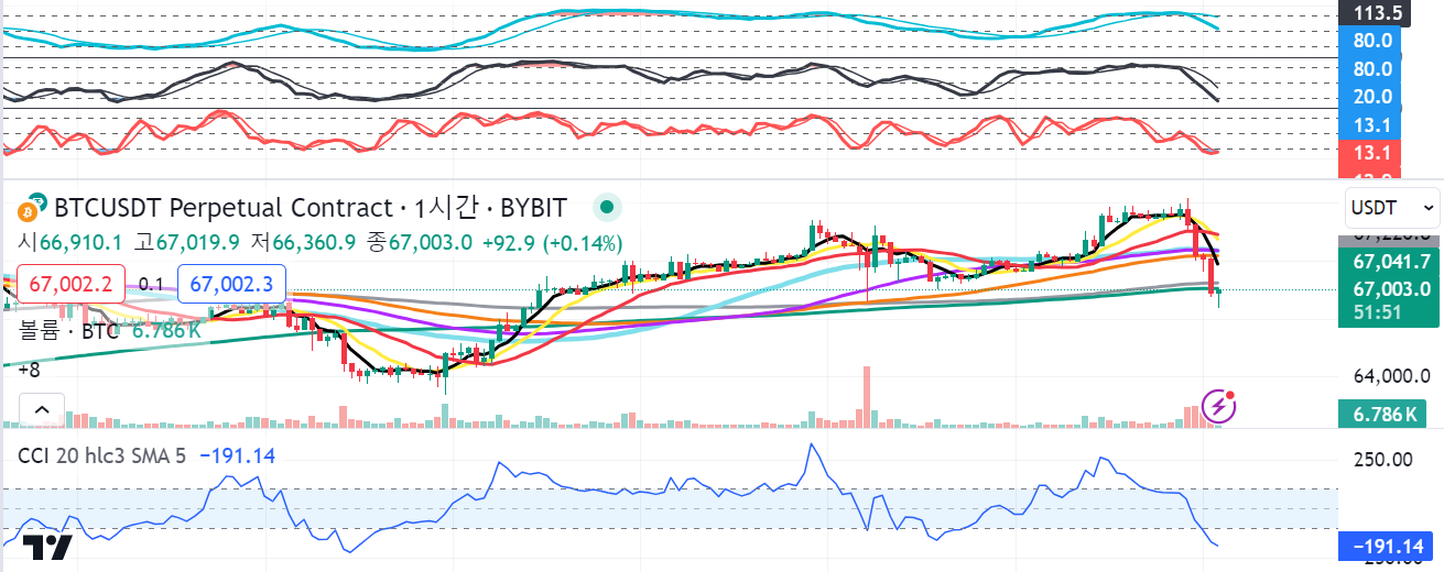 - 그에 따라 1시간봉들도 모두 음봉 출현.